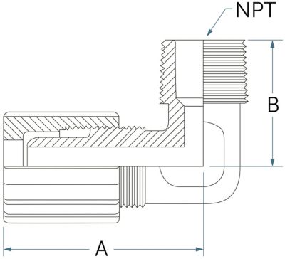 - Apply PTFE tape or paste sealant to MNPT threads starting one thread back from end of fitting.