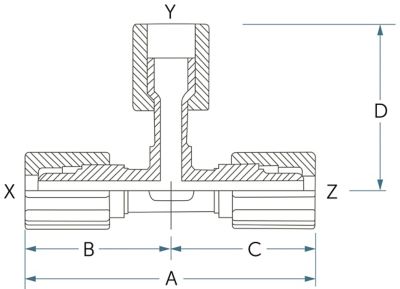 | UT12-12T-12FN-II | 3/4" Flaretek | 3/4" Flaretek "SpaceSaver" | 3/4" Flaretek | 0.63" (16.0 mm) | 4.44" (112.8 mm) | 2.22" (56.4 mm) | 2.22" (56.4 mm) | 2.23" (56.6 mm) |