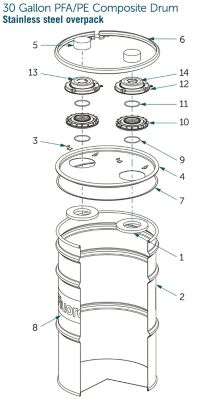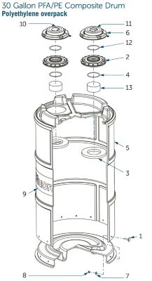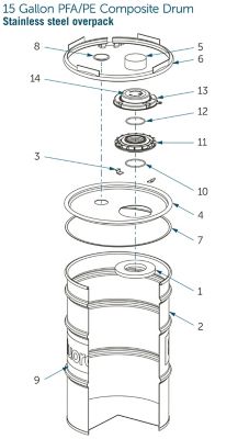 | N/A | 5 | PE overpack | 1 | 1610-231 | 12 | FEP encapsulated silicone o-ring | 2 |