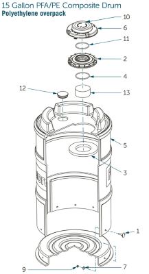| N/A | 1 | PE overpack for PFA/PE | 1 | 01-004472 | 5 | Lock nut | 10 |