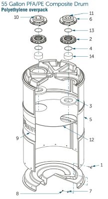 Note: For detailed instructions on how to retrofit a metal overpack FluoroPure drum with a polyethylene overpack please contact Entegris.