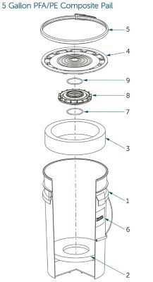 | N/A | 4 | Pail lid | 1 | 1610-231 | 9 | FEP encapsulated silicone o-ring | 1 |