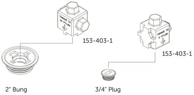 | 153-403-1 | Compact, corrosion-resistant, all-plastic dual-sided torque wrench adapter mates on 2" bungs, or flip it over for use on 3/4" plugs. | PE |