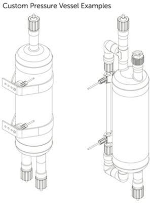 Due to the potential variety of overall length options, end caps styles and fitting configurations and sizes, each pressure vessel is handled as a custom assembly. Custom features may include: