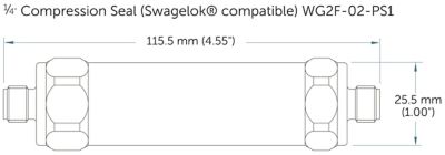 | WG2F02PS1 | 1/4" compression seal (compatible with Swagelok fitting) male inlet/outlet | 115.5 mm (4.55") |