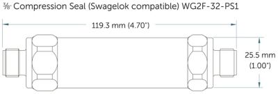 | WG2F32PS1 | 3/8" Compression seal (compatible with Swagelok fitting) male inlet/outlet | 119.3 mm (4.70") |