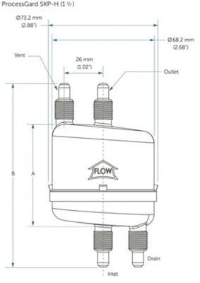 | Maximum Operating Conditions: | Maximum forward differential pressure | 0.34 MPa (3.4 bar, 49 psi) @ 20°C (68°F) 0.14 MPa (1.4 bar, 20 psi) @ 90°C (194°F) |