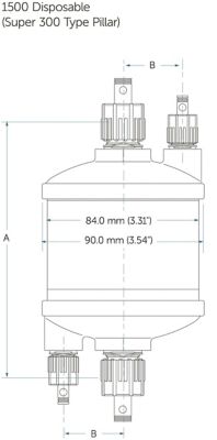 | TSPT15CM31SD | P1500 Small Disposable | Low Flux | N/A | No | N/A | 3/8" inlet/outlet, 1/4" vent/drain, Super 300 Type Pillar® fitting | 4" |