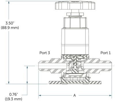 Galtek® SGシリーズ手動式バルブ、1/4"オリフィス、三方弁、1/4ターン