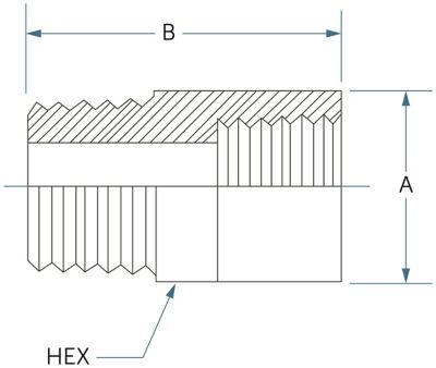 | 型番 | 接続1 | 接続2 | オリフィス | A寸法 | B寸法 | 六角対辺 |