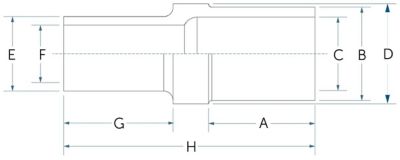 | WR8-4P | 1/2" | 1/4" | 9.1 mm | 14.0 mm | 13.7 mm | 9.0 mm | 23.6 mm | 21.3 mm | 15.4 mm | 38.1 mm | 64.8 mm |
