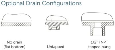 注: 高温アプリケーションでは、タンク内容量や関連部品の重量でタンクが変形しないように、タンク底面および側壁を完全に支持する必要があります。