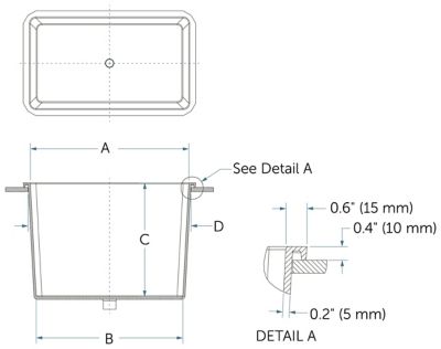 | 型番 | A 上部内側 長さ × 幅 | B 底部内側 長さ ×幅 | C 深さ | D 取り付け穴 長さ × 幅 |