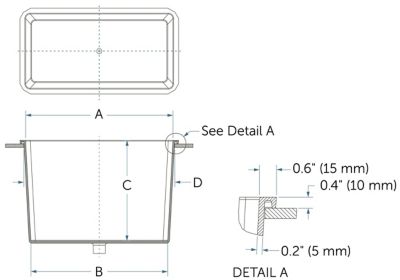 | 型番 | A 上部内側 長さ × 幅 | B 底部内側 長さ × 幅 | C 深さ | D 取り付け穴 長さ × 幅 |