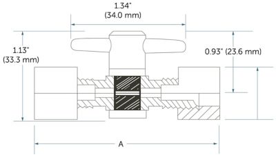 | PVT2-2-2 | 41 | 5.9 | 3.18 mm (1/8")インテグラルフェルール1 | 1/8 NPTオス | A | 62.5 mm |