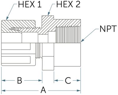 | FC8-12N | 12.7 mm (1/2") インテグラルフェルール | 3/4 NPTメス | 10.9 mm | 50.8 mm | 26.7 mm | 17.0 mm | 23.81 mm | 30.16 mm |